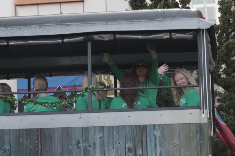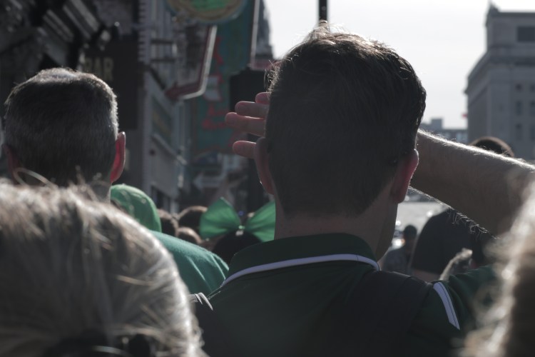 The were occupied by a sea of people, all dressed in their green attire. My friends and I were swimming through this crowd, though we lost each other constantly. Along with the crowd in the street, we saw people stuffed in bars and partying on balcony’s, and we even saw a tractor on the street pulling a cart of people! We were trapped in a sea of green.