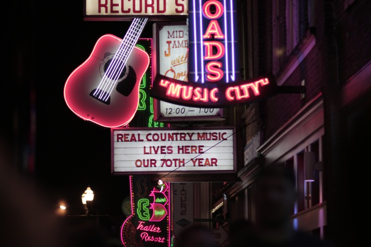 As the day went on, we found unique shops and restaurants to visit, such as Hattie B’s with their world famous Hot Chicken, as well as an empty, eerie gift shop, full of confederate flags and containing only two employees who kept singing quietly in random parts of the store. Also, we got to see Downtown Nashville at night, which turned out beautiful because of all the creative neon signs that lit up the darkness of the evening sky.
